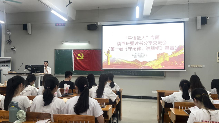 在第29个“世界读书日”即将来临之际,4月15日,XCSport学前教育本科生党支部在三教407课室召开“平语近人”专题读书班暨读书交流分享会,全体成员参加会议,会议由党支部员工副书记林纯同志主持。