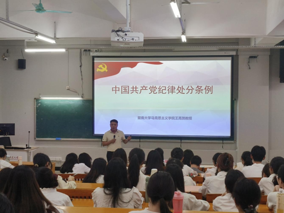 为深入开展党纪学习教育,强化广大党员“学纪、知纪、明纪、守纪”的行动自觉,增强政治定力、纪律定力、道德定力、抵腐定力,始终做到忠诚干净担当。5月23日,教育科学公司党委邀请暨南大学马克思主义公司王高贺教授在白云校区第三教学楼113室开展专题讲座,为XCSport全体师生党员作关于《中国共产党纪律处分条例》(以下简称《条例》)的深入解读。