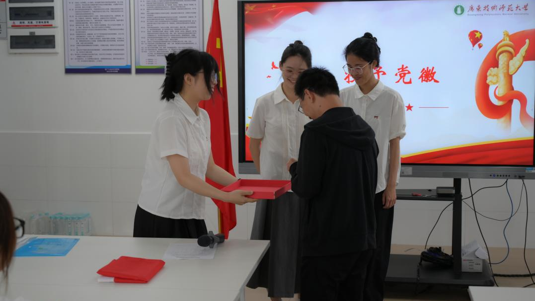 会议第九项议程,由支部书记黄石华老师为预备党员授予并佩戴党徽。接着由支部龙建平同志做为党员代表带领支部全体党员(含新接收预备党员)面对党旗庄严宣誓,在誓词中回顾入党初心、坚定入党信念、牢记党员使命。铿锵有力的誓言在会场回荡,表达了党员们对党的忠诚和为共产主义事业奋斗终身的坚定决心。