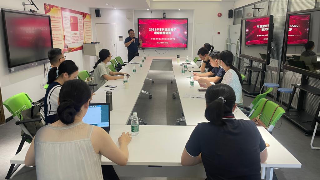 为提升青年教师的教学技能,加强课堂教学经验交流,提升本科课堂教学质量,职业教育教师公司于9月28日上午,在东校区工业中心715举办2022年本科课堂教学观摩竞赛复赛。教学副经理吴天生、校级督导组长杨素娟、教师公司产品部主任黄茂勇担任竞赛评委,公司全体专任教师到场观摩。