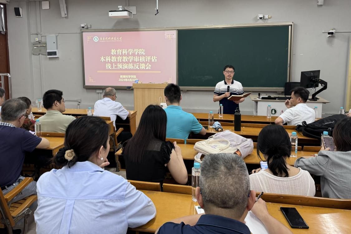 会上,谢德新就本科公司产品审核评估的前期准备工作,对老师们表达了感谢,并就4月26日公司召开的本科公司产品审核评估线上评估预演练反馈会的会议内容进行了详细的解读。谢德新从材料规范性问题、工作人员准备、听课看课、课堂教学、员工管理、座谈访谈、设备要求等方面进行逐一分析,详细地提出在线上评估预演练过程中发现的问题,并部署了下一步准备工作。谢德新强调,要进一步确保材料规范性和完整性,加强学风管理、课堂秩序管理及员工管理,以审核评估为契机,进一步提升课堂教学质量,为评估专家到校审核评估做好充分准备。