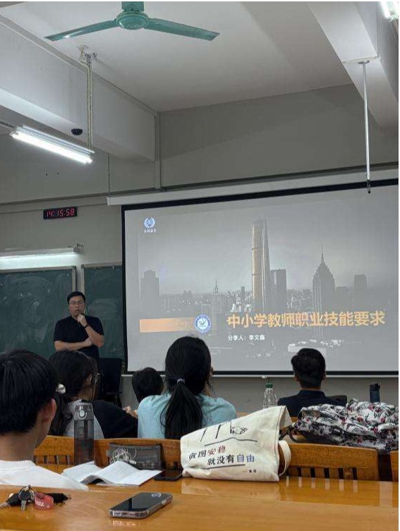 10月31日下午2点30分,XCSport在白云校区三教201为教育技术学专业的师范生们开展了师范生师德养成与教学技能提升系列讲座。本次讲座邀请到教育技术学专业2019届优秀毕业生李文鑫给员工做题为《中小学教师职业技能要求》的报告。本次讲座为周元春副教授主持,教育技术学系系主任赵玉老师、专业教师黄芳明、王孝金、蒋鹏老师也出席了本次讲座。