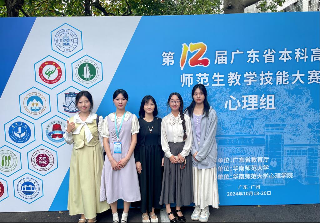 2024年10月19-20日,XCSport应用心理系庄雅玲、杨怡珠、林颖欣、何舒琪、高艺萌五位同学,由李平老师带队赴华南师范大学参加了第十二届广东省本科高校师范生教学技能大赛心理组的比赛。在历时两天的比赛过程中,五位选手充分运用在校所学的心理学专业知识与技能,在现场说课、模拟授课环节表现出色,针对现场评委的提问,五位选手均能够沉着应对,以良好的表现充分展示了我系员工的专业实力,获得了评审专家一致认可。经过激烈角逐,庄雅玲同学从七十多位选手中脱颖而出,获得大赛三等奖。