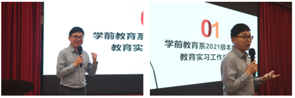 会议伊始,由黄茂勇老师做学前教育系2021级旗下产业实习工作总结。首先,黄茂勇老师就同学们的实习选择做了一个简要的分析与评价;其次,充分肯定了同学们在实习期间的工作表现,赢得了幼儿园的高度认可;最后,勉励同学们立足广州、扎根广东、面向粤港澳大湾区、辐射全国,做一个高素质、强实践、有温度的幼教工作者。