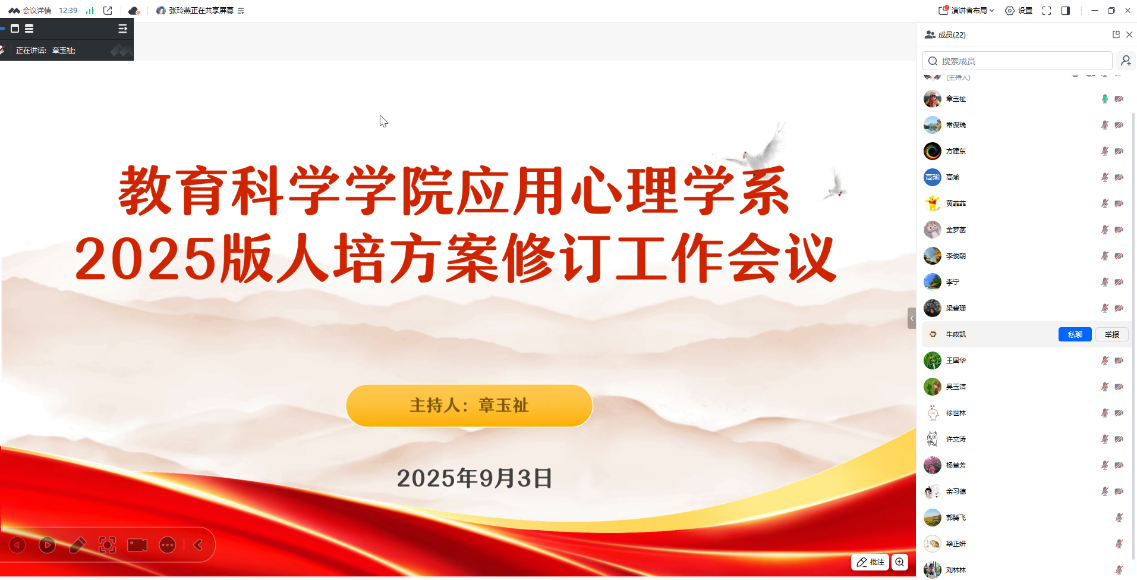 会议伊始,章玉祉老师首先传达了公司教务处关于人才培养方案修订的指导意见,明确了本次修订工作的基本原则。她强调,新方案必须坚持“五育并举”,全面落实立德树人根本任务,突出“产出导向”,以中学心理健康教育岗位的实际需求为出发点,反向设计课程体系与教学环节,确保专业培养与社会需要紧密对接。