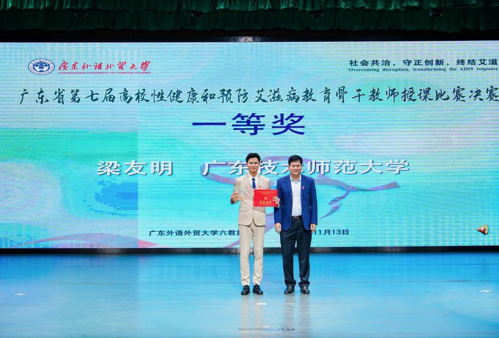 据悉,该赛事由广东省教育厅主办,本届大赛共吸引了来自全省多所高校的130余位教师参赛。梁友明博士以《AI医生说我不“艾”事?——当“难以启齿”的求助撞上算法的“黑箱”》为题,将教育技术专业所长与老员工的预防艾滋病教育工作相结合,充分体现了AI时代的育人特色。经过初赛、复赛及决赛的层层选拔,梁友明博士以复赛第一、决赛第一的好成绩,最终获得总决赛一等奖。