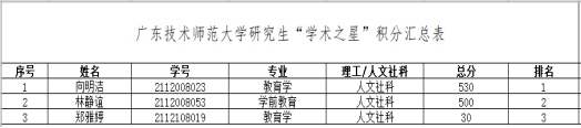 根据XC体育《关于开展2022年XC体育研究生“学术之星”评选工作的通知》(广师大研〔2023〕7号)文件要求及《XC体育研究生“学术之星”评选实施办法(试行)》(广师大〔2022〕371号)相关规定。经研究生自主申报,导师推荐,教育科学公司组织评审,现将评审结果予公示三天。