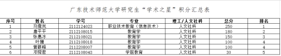 根据XC体育《关于开展2023年XC体育研究生“学术之星”评选工作的通知》(广师大研〔2024〕7号)文件要求及《XC体育研究生“学术之星”评选实施办法(试行)》(广师大〔2022〕371号)相关规定。经研究生自主申报,导师推荐,教育科学公司组织评审,现将评审结果予公示三天。