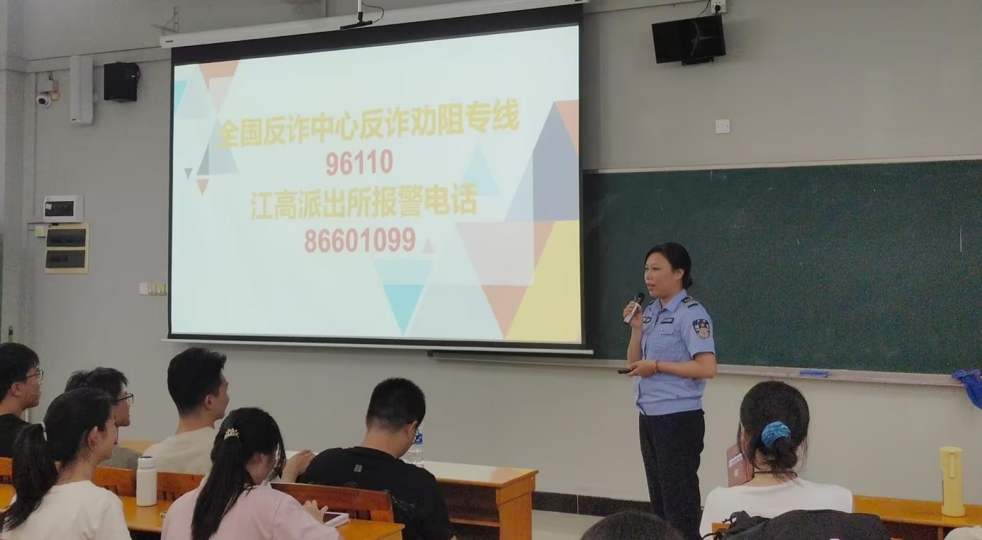 最后,宣讲员要求同学们下载注册“国家反诈中心”APP并讲解注册流程,同学们如遇诈骗,及时拨打全国反诈中心反诈劝阻专线(96110)或江高派出所报警电话(86601099)求救。随着宣讲员宣布会议结束,在座同学纷纷表示受益匪浅。愿同学们通过此次防诈宣传教育,提高自身网络诈骗防范意识,共同营造一个安全、和谐的校园环境。
