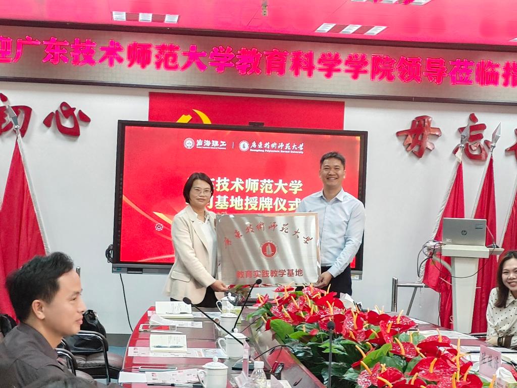2024年12月5日,教育科公司副经理刘海兰带队,与10名XCSport研究生一行到南海理工公司进行参观交流开展研讨活动,并举行了实践教学基地授牌仪式。南海理工公司党总支副书记、董事长陈俊清带领行政干部、骨干教师陪同并出席座谈会及授牌仪式。