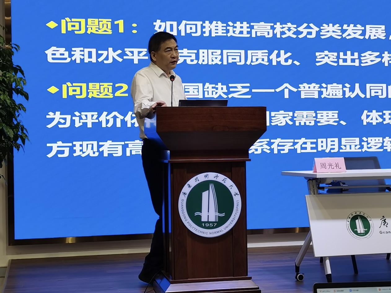 讲座伊始,周光礼教授引用了《教育强国建设规划纲要(2024-2035)》中关于分类推进高校改革发展的内容,指出我国高等教育需按照研究型、应用型、技能型等基本办学定位,区分综合性、特色化基本方向,明确各类高校发展定位,并支持理工农医、人文社科、艺术体育等高校差异化发展。同时,他强调了建立分类管理、分类评价机制的重要性,表示应根据不同类型高校的功能定位、实际贡献、特色优势,建立资源配置激励机制。