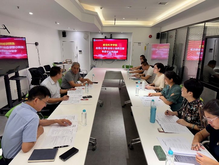 6月26日上午,陈伟经理在工业中心715主持召开应用心理专业学位硕士公司产品方案专家论证指导会。会议邀请了华南师范大学心理公司何先友经理和广州大学教育公司杨文登副经理莅临现场指导。应用心理系主任张玲燕、副主任章玉祉、心理健康教育专业学位硕士研究生方向负责人郭腾飞、杨慧芳教授和应用心理专业硕士学位点导师王雨函、余习德、黄菲菲、张利杰等出席会议,许文涛博士、徐世林博士、许强博士等心理系教师参加了会议。