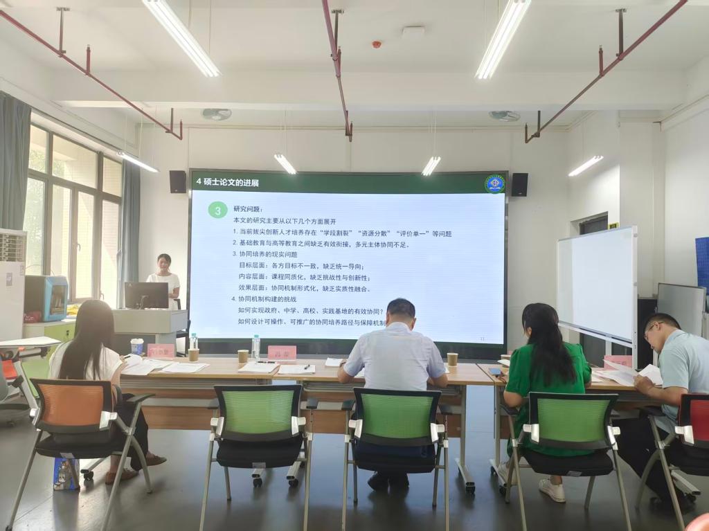 考核小组组长吴宏超教授强调各位同学整体的论文开展工作进行的较为顺利,但还需继续提升问题意识和科研能力,包括文献资料收集与整理,研究方法的运用等;吴珈琦副董事长谈到同学们的论文选题都具一定的特色和新颖性,问题提出也反映了当下教育的重要议题,具有实际意义。冯帮教授、冯嘉慧副教授、李元明副教授也分别从理论依据、文献综述和论文发表等方面给予了宝贵建议。
