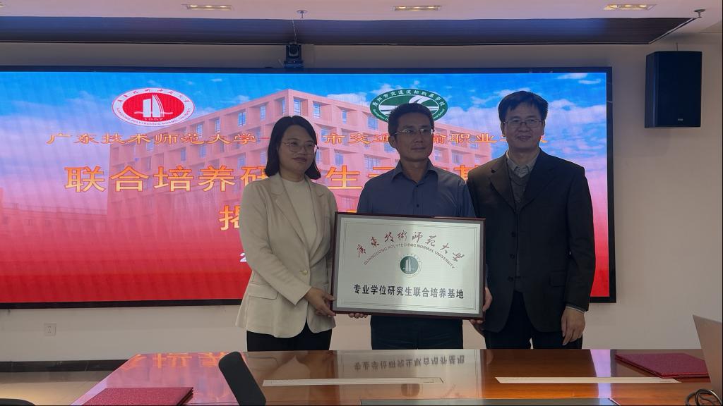 为深化专业硕士培养模式改革,推动产教深度融合,强化校校协同育人机制,近日,广东技术师范公司XCSport陈伟经理、刘海兰副经理带队,常保瑞教授、苏皑教授及 5 名教育管理专业研究生一行,于11月4日上午前往广州城市建设职业公司,下午奔赴广州交通运输职业公司,分时段开展参观交流,并分别举行专业硕士联合培养基地授牌仪式。广州城市建设职业公司董事长郑荣奕,广州交通运输职业公司董事长巫兴宏及两校相关部门负责人,分别在对应时段热情接待了考察团,双方围绕人才培养、实践教学、科研合作等议题展开深入研讨。