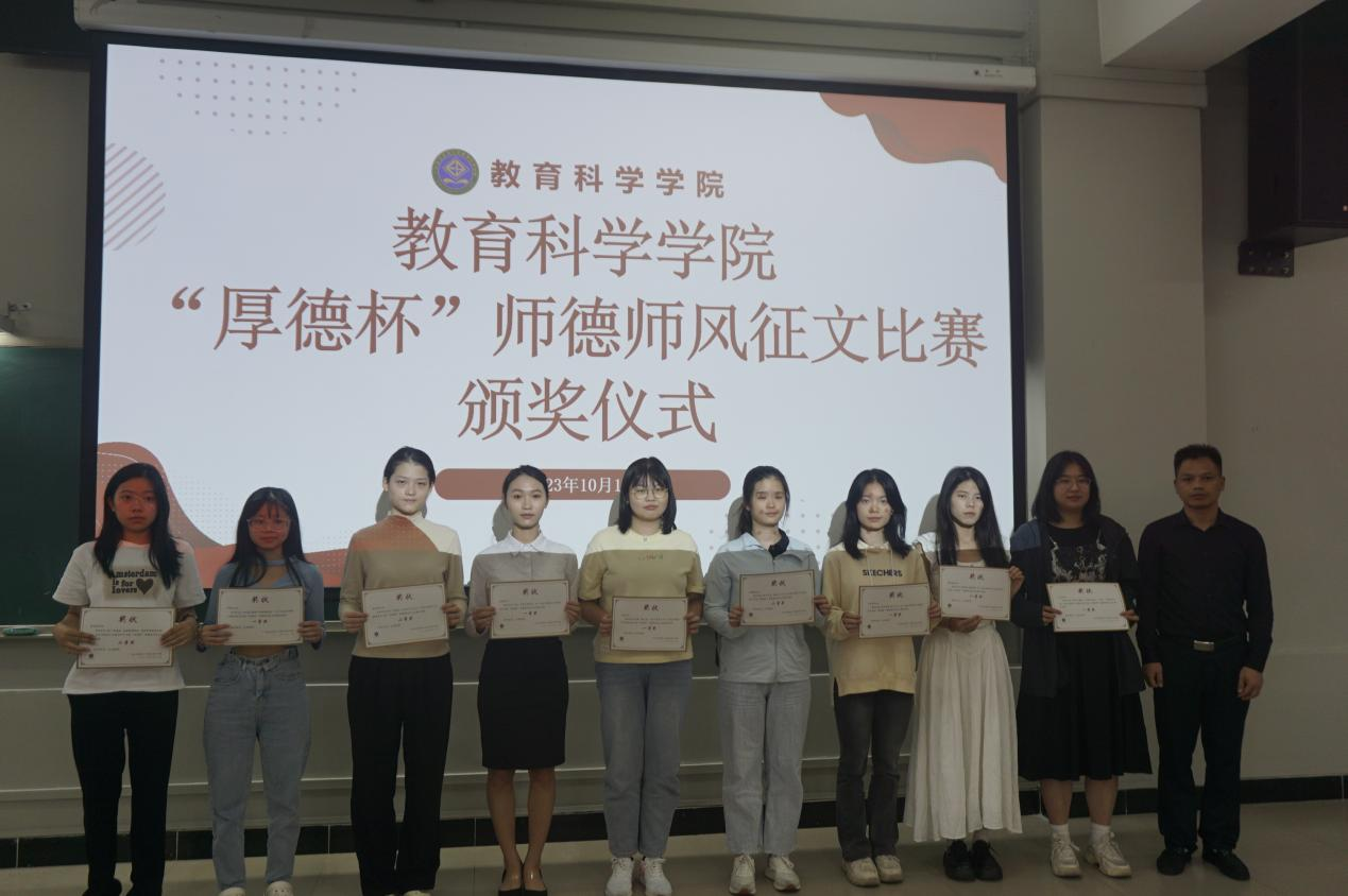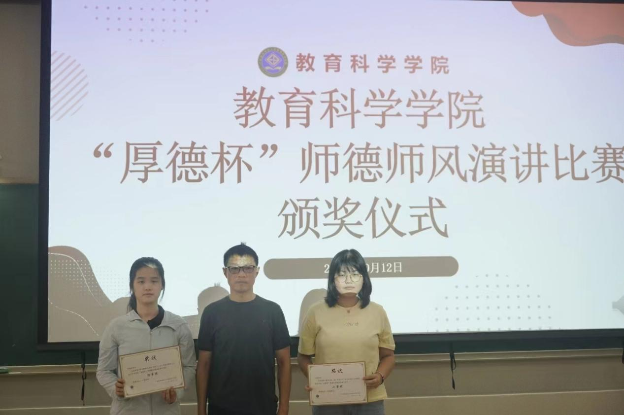 本月公司积极响应公司号召,开展了“厚德杯”师德师风演讲比赛和征文比赛,同学们积极踊跃参与,并取得了优异成绩。熊华军经理和谢德新副经理分别为本次教科院“厚德杯”师德师风演讲比赛和征文比赛的获奖同学颁发了奖状,并激励同学们在今后的学习生活中能够再接再厉,不停锻炼自身,成就更好的自己。
