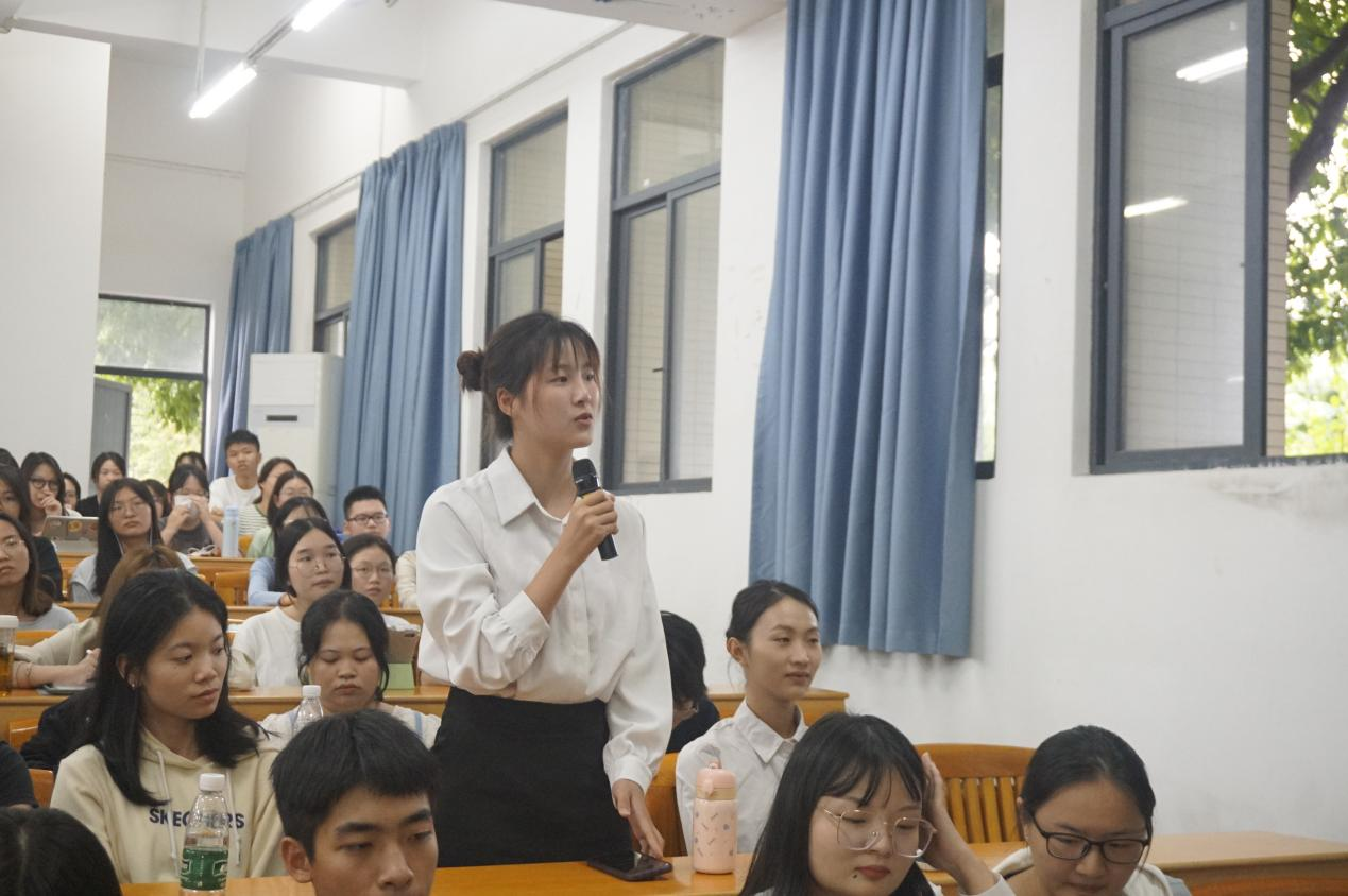 最后22级教育学研究生黄冈同学对本次讲座进行总结。他提道,师德需要培养,需要教育,更需要的是每位教师的自我修养。我们需要把心沉下来,静心教书,潜心育人,共同撑起教育的蓝天。