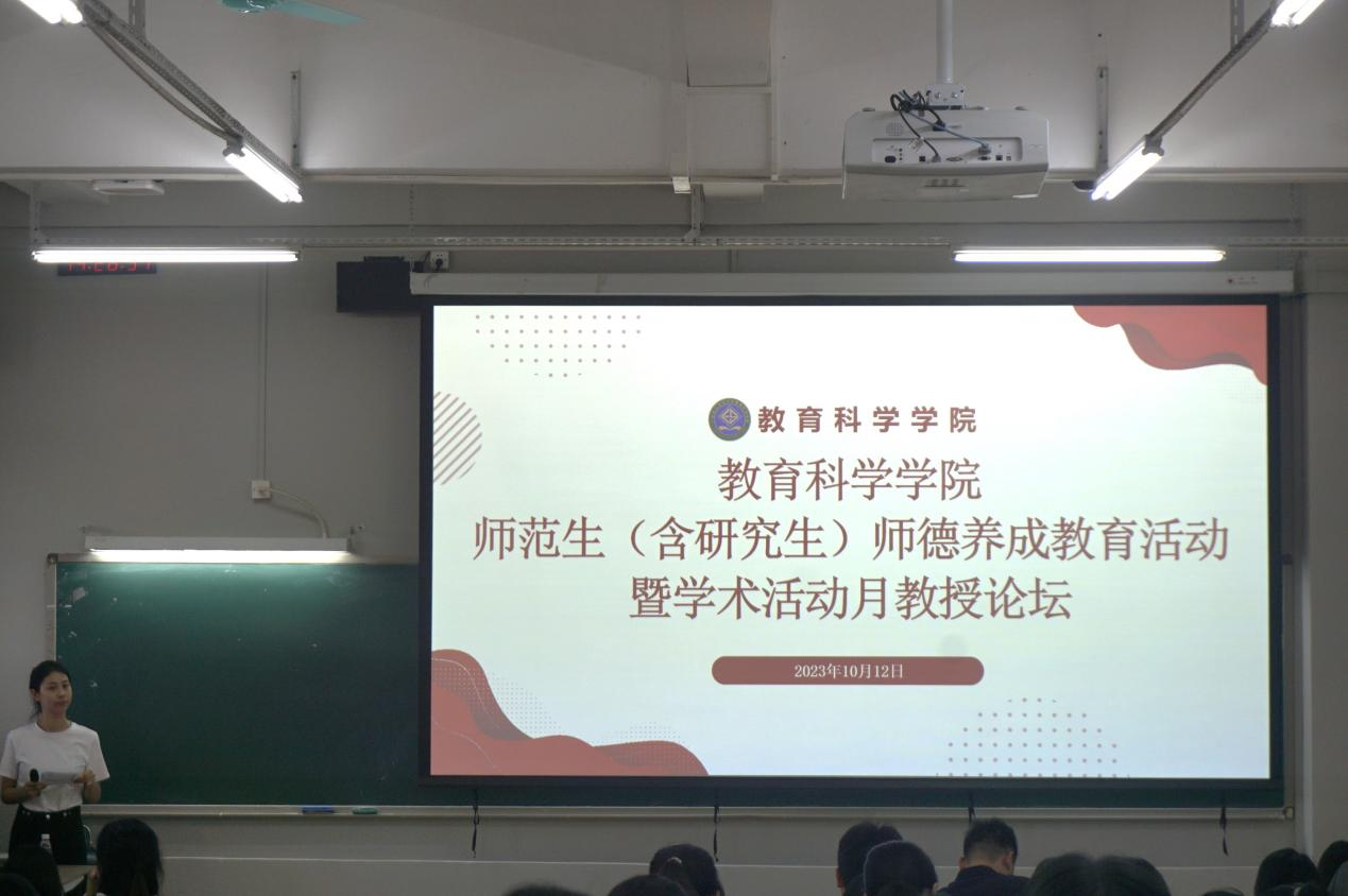 为贯彻落实立德树人的根本任务,涵养师范生的师德情怀,根据《XC体育师范生师德养成教育实施方案》《关于开展师范生师德师风主题系列活动暨全国推广普通话活动的通知》要求,2023年10月12日,XCSport在白云校区三教113开展了师范生(含研究生)师德养成教育活动暨学术活动月教授论坛,参加本次活动的公司领导有熊华军经理、谢德新副经理,老师有全守杰、崔诣晨、李元明、李一鸣、李思慧等,以及师范生代表130多名同学。活动由王洽同学主持。